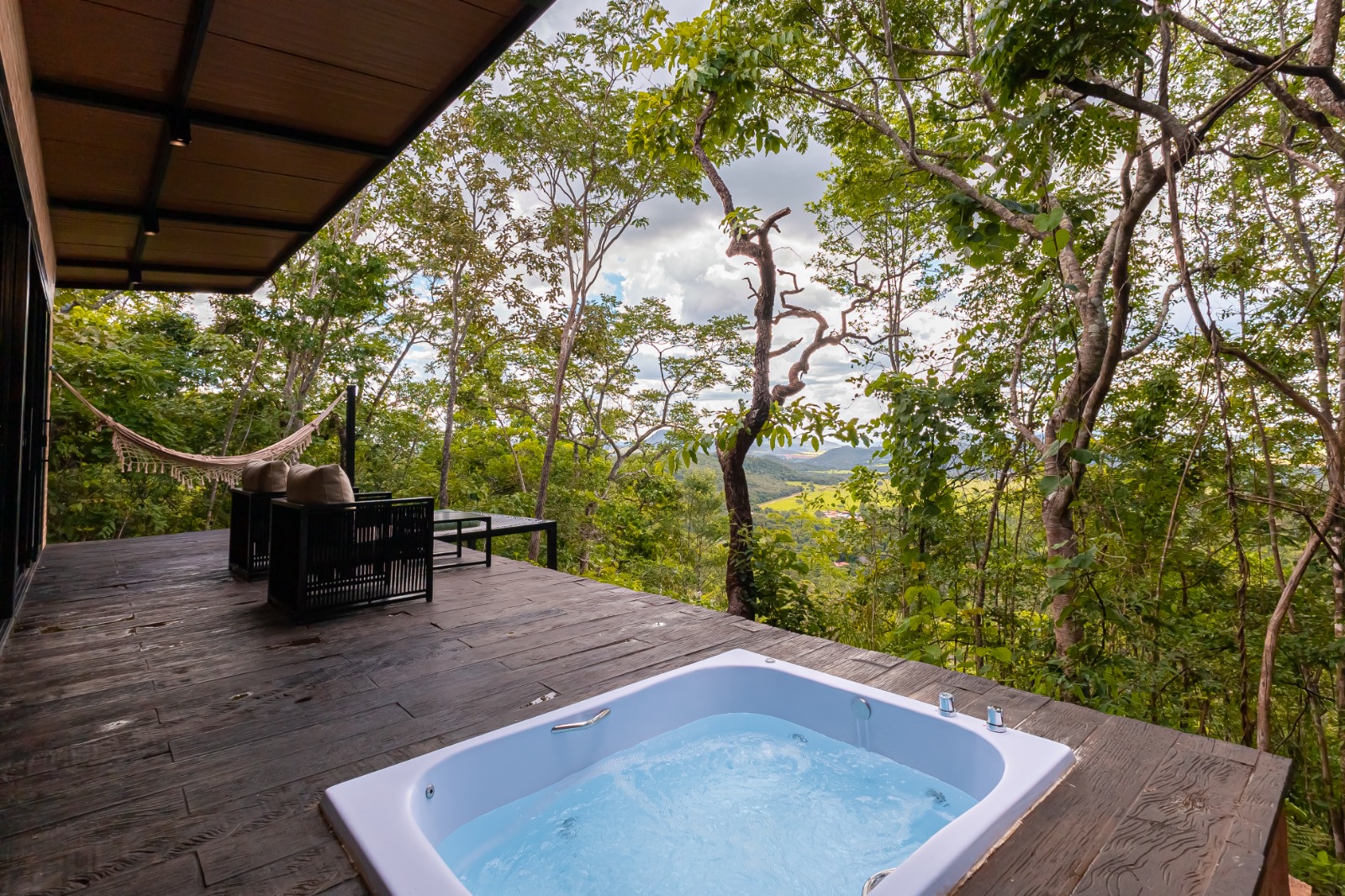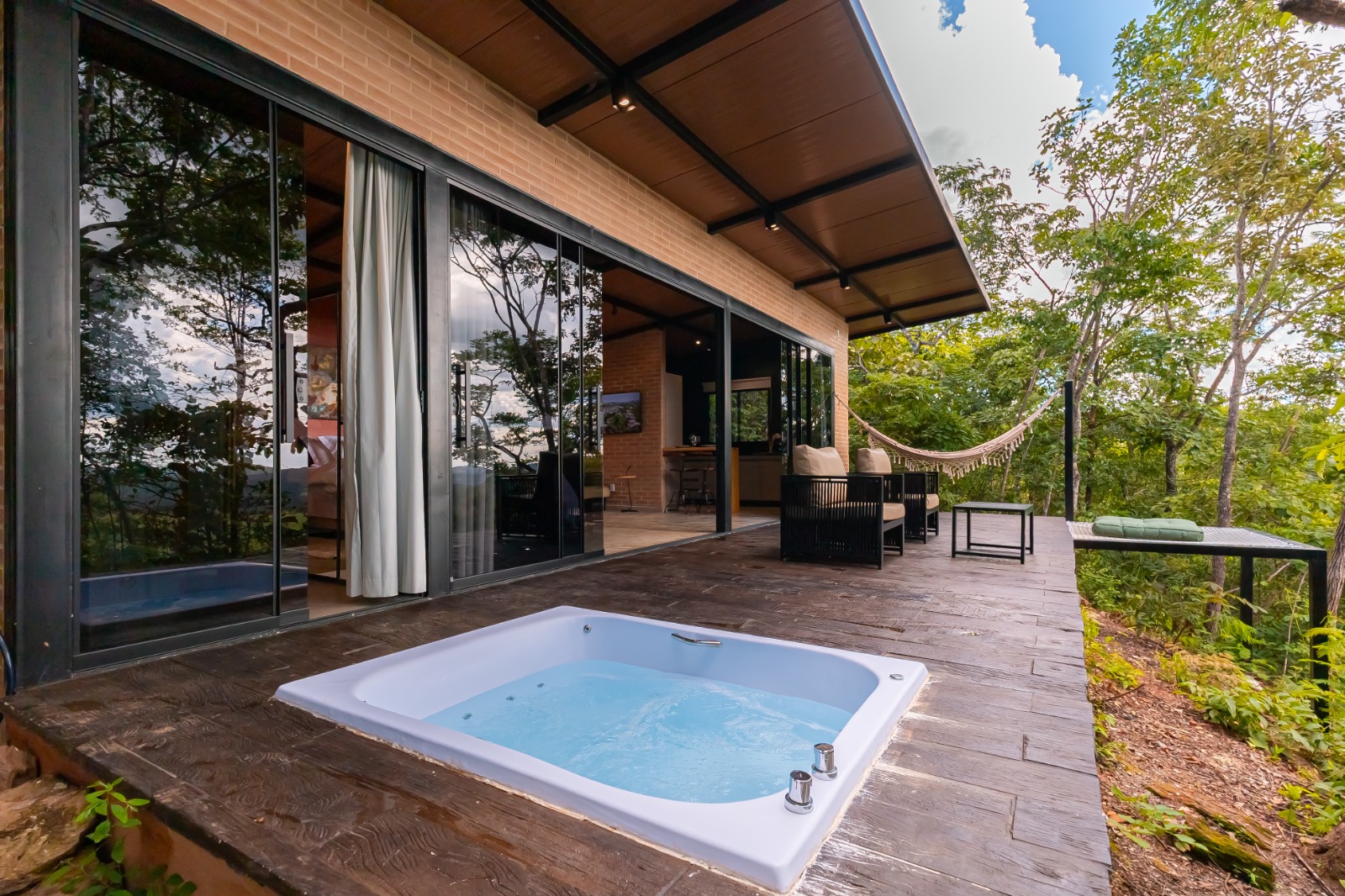 Abastecidos por água de nascente própria, testada e segura, os chalés oferecem chuveiro e banheira com aquecimento a gás, garantindo água quente e conforto total durante sua estadia.